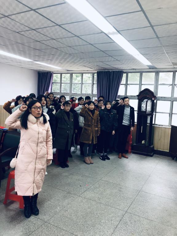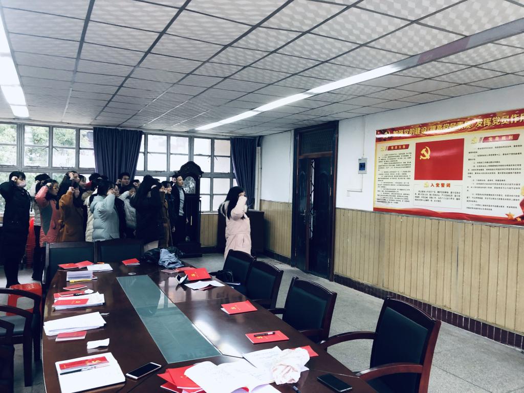 12月27日中午,Beat365官网学生党支部举行新党员入党宣誓仪式。学生党支部书记何晶晶同志主持仪式。