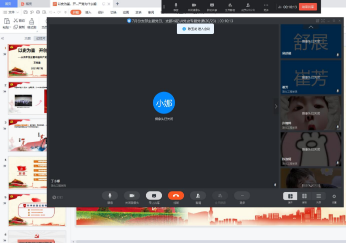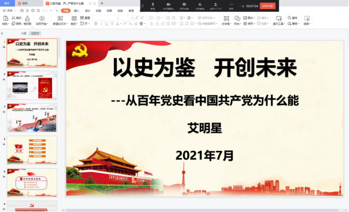 7月13日中午,Beat365唯一官方网站学生党支部以钉钉会议的形式开展“支部书记讲党史专题党课”暨7月份支部主题党日活动,全体学生党员参加了会议,会议由吴舒展同志主持,党总支副书记艾明星为全体学生党员讲“以史为鉴 开创未来——从百年党史看中国共产党为什么能”专题党课。