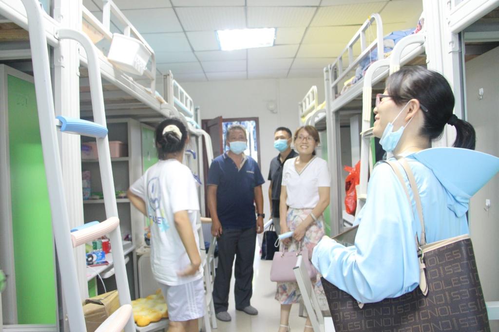 在同大“四改六”寝室,院领导与学生亲切交谈,询问他们在新寝室的生活情况,是否适应新的学习生活环境,并强调要持续做好疫情防控,注意用电安全,并勉励大家珍惜时光,不负韶华,学好专业知识,练就过硬本领,努力成长为可堪大用能担重任的栋梁之才。院领导还认真查看了宿舍的家具、设施配备情况,并叮嘱辅导员和班主任一定要了解学生的需求,对设施设备损坏情况记录在案并及时报修,解决学生住宿中存在的困难和问题。