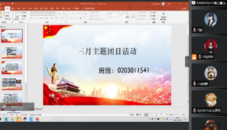 此次主题团日活动宣传了防疫知识,引领广大团员青年弘扬“抗疫精神”,强调疫情期间同学们应当遵守学校的各项防疫要求,督促大家注意每日体温上报、完成核酸检测、在校园里戴好口罩,不聚集等疫情防护措施。接着,各班组织同学们观看了习近平总书记2022年的贺词视频,大家都积极参与讨论,讲述了自己寒假社会实践经历。