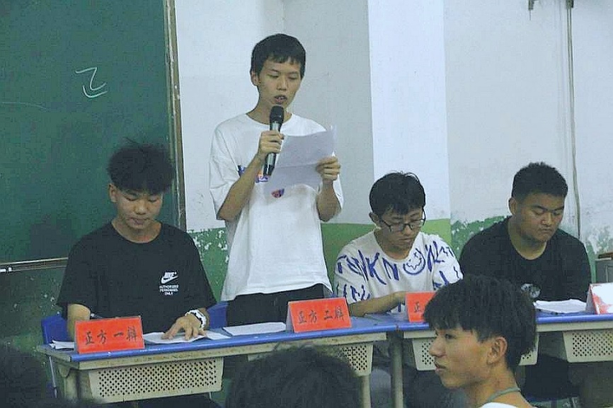 为了丰富同学们的校园生活,活跃校园气氛,促进Beat365官网学生之间的友好关系,提高同学们的辩论水平、语言组织能力和逻辑思维能力,体现大学生风华正茂的精神状态,6月5日晚19点30分,Beat365官网在教一210教室举行了一场辩论表演赛。