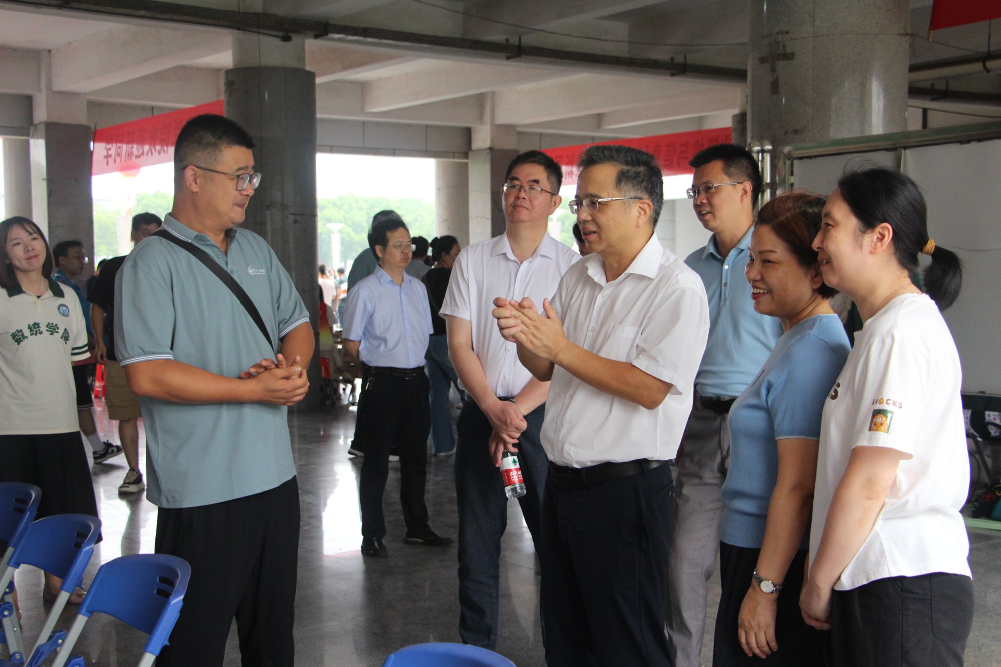 新生报道当天,院长肖应雄、院党委书记王晶等院领导亲临现场,指挥协调迎新工作,党委副书记尹洁、团委书记郑放、辅导员吴亚美全程指导志愿者们开展迎新服务工作。志愿者们不厌其烦地为新生以及新生家长们解答问题,主动帮他们拎行李,一路谈笑风生。人头攒动,秩序井然,大家热情周到的服务很快消除了新生们初来乍到的陌生感。