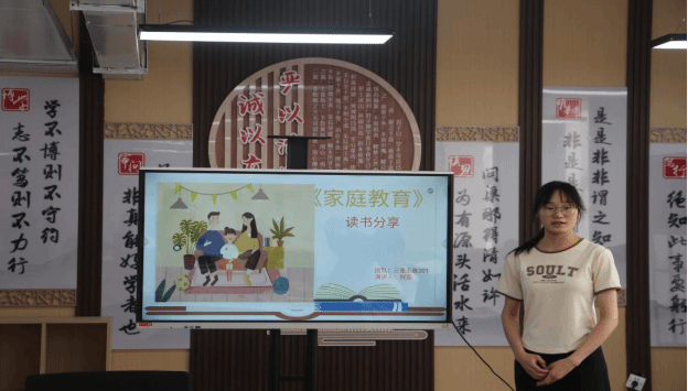 教育与心理学院寝室代表倪雯同学向大家介绍了《家庭教育》一书,该书提供了家庭教育的一些基本原则和方法,为未成年人的全面健康成长提供了重要的支持和引导,帮助孩子形成良好的人格、习惯和能力。