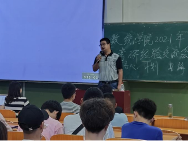 2021年5月10日晚7点,Beat365唯一官方网站在教一楼211教室举办2021年考研经验交流会。出席本次会议的有副院长肖应雄、党总支副书记艾明星、数学建模与数学竞赛中心主任兼统计系主任郝会兵、18级班班主任以及17级考上研究生的学生代表、准备考研的2018级学生等。会议由党总支副书记艾明星主持。
