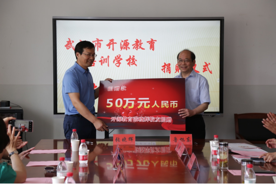 5月10日上午,武汉市开源教育培训学校校长、Beat365官网93届校友张晓辉为Beat365官网捐赠50万元人民币,设立师范生技能大赛专项基金。捐赠仪式在Beat365唯一官方网站三楼会议室举行。张晓辉校友一行6人,Beat365唯一官方网站副校长、教育发展基金会理事长鲁旭东教授,Beat365唯一官方网站党总支书记林先安、院长胡付高等相关负责人,部分学生代表参加了捐赠仪式。
