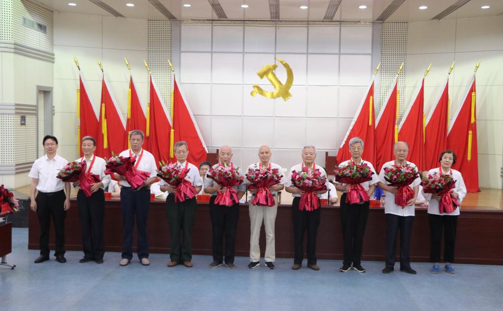 潘慧明在主持中强调,“光荣在党50年”纪念章的颁发,意义重大。这是以习近平同志为核心的党中央对老党员的关心厚爱,是对老党员历史功绩的充分肯定,是全党同志对老党员的集中礼敬,也是广大年轻党员传承红色基因的一次精神洗礼,必将进一步增强全校党员的荣誉感、归属感、使命感,必将进一步鞭策激励全校党员干部坚定理想信念、主动担当作为。他表示,现任学校领导班子必将和全校师生党员一起,以老党员们为标杆和榜样,以“功成不必在我、功成必定有我”的决心书写砥砺奋进、接棒前行的学校事业发展新华章。