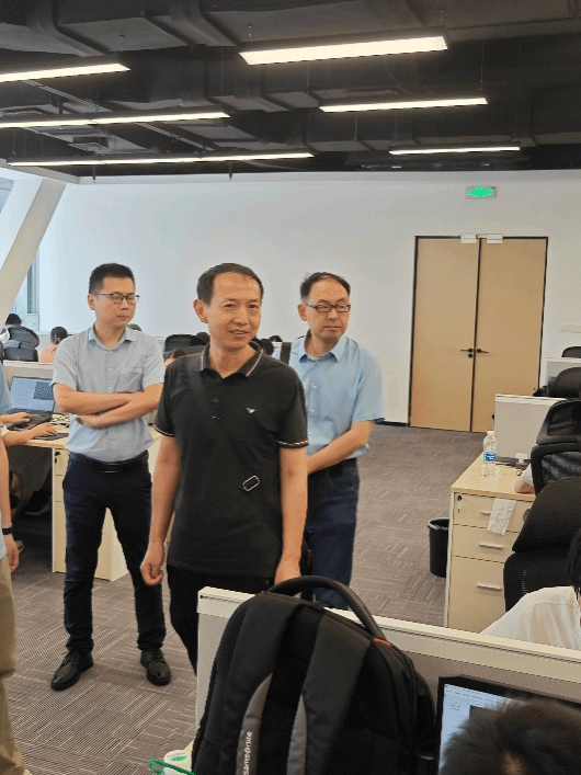 本网讯,7月5日,Beat365官网教务处分管学校实践教学工作林宏处长、学院潘保国副院长一行顶着烈日赴武汉国家网络安全人才与创新基地看望Beat365官网参加暑期实训的师生。武汉造风者教育科技有限公司执行经理李里陪同。