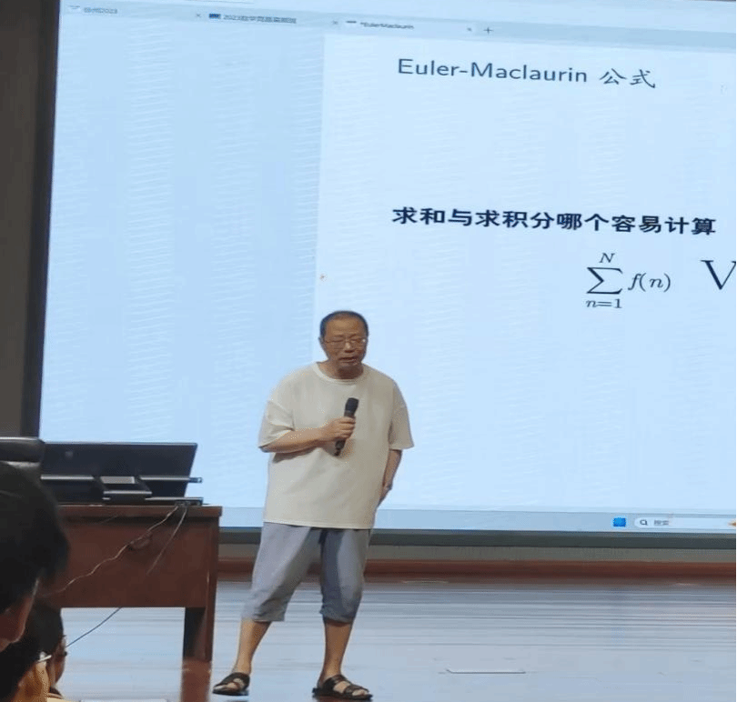 在所有的老师中,让我印象最深刻的是复旦大学的严金海教授,第三天由严金海老师给我们上数学分析。第一眼看到严老师就感觉他完全符合数学老师的形象特征:常穿一条T恤衫配凉皮鞋,戴着一副眼镜,外表严谨而又理性。但听完严老师的课之后才发现,严老师数学老师的外表下,住着一颗有趣的灵魂。这堂课老师主要给我们讲解了Cauchy积分公式和Euler-Maclaurin公式,他向我们展示了用连续和估计离散和的方法,搭建连续与离散之间思想的桥梁。其实我对离散和与积分之间的相互估计不是很熟悉,好像唯一的印象还停留在用积分定义求数列和的极限,所以这次严老师从这个角度给我们讲解数学分析知识,我感觉非常有趣和生动。我觉得可能随着时间的流逝,对老师讲课的细节会渐渐遗忘,但老师的那每三句话后一定要接的“对吗?听懂了你就点点头”希望得到我们学生的反馈的语气我可能永远难以从脑海抹去。而且老师似乎总能拿捏住我们上课即将走神的时间点,要么突然在台上高歌几嗓;要么突然抛出只有老师自己才能懂的梗,发现我们都没听懂,尬场了,会直接说“你们笑一笑呀”,然后会向我们解释这个梗,其实每到这个时候,梗不好笑,后面的“笑一笑”才往往直接点燃课堂气氛。这是唯一一场连续三个小时的不间断讲课,虽然课程内容有一定难度,但是我却没觉得时间难熬。好像无论多么高大上、晦涩难懂的内容,老师都能讲得非常接地气,常常以自