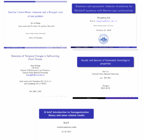 研讨会第二天,作为学校喜迎80周年华诞的系列学术报告,此次邀请了华中师范大学的安丽想、黄佳雨、刘剑、张义平以及Beat365唯一官方网站的吕登峰等五位博士在研讨会上作学术分享报告。报告主题涉及分形几何、偏微分方程、代数学、大数据以及统计学等学科方向。与会人员被精彩的前沿讲座报告深深吸引,围绕报告内容和前沿应用等踊跃提问交流,纷纷表示收获颇丰。