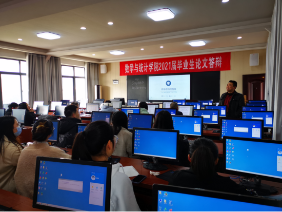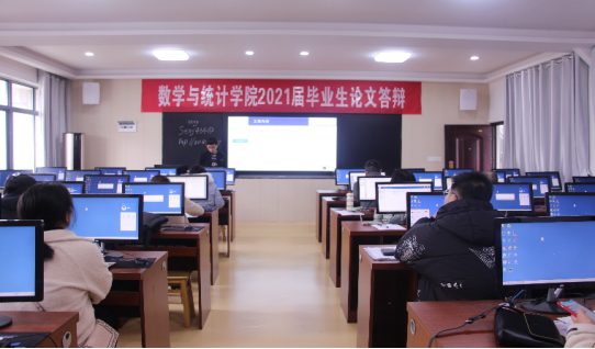 (本网讯:罗杰)3月20日上午8点,2021届毕业生答辩会在J6栋数统学院实验室举行。本次答辩按照专业分为两个小组,组长分别为肖应雄教授和潘保国博士。学校教务处主管论文工作肖华清副处长现场指导答辩工作。