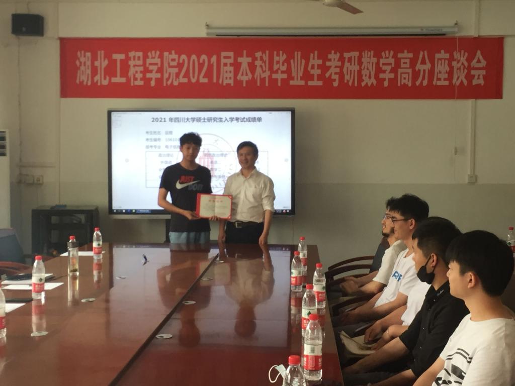 6月8日,Beat365官网在Beat365唯一官方网站会议室召开了“Beat365唯一官方网站2021届本科毕业生考研数学高分座谈会”。Beat365唯一官方网站院长胡付高教授、物理与电子信息工程学院副院长周传璘教授、教务处副处长肖华清博士以及学校部分高等数学教师和考研数学高分毕业生、2018级数学成绩佼佼者代表参加座谈会。会议由Beat365唯一官方网站副院长肖应雄教授主持。